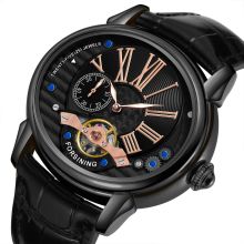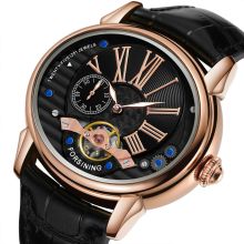 Crafted with a black alloy case measuring approximately 1.8 x 1.7 inches, this timepiece offers a distinct oval shape that sets it apart from conventional designs. The crisp white dial is accented with silver Roman numeral markers, while the black genuine leather strap adds a rich, timeless touch. At the heart of the watch is a self-winding automatic movement, showcasing the intricate tourbillon mechanism — a symbol of high watchmaking tradition and mechanical precision.