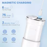 Powered by a 1800mAh lithium battery, this flosser offers up to 30 days of use on a single 6-hour charge via the included USB cable. Magnetic charging ensures a secure and easy power connection. With an IPX7 waterproof rating and a full-opening removable tank, it's built for daily convenience and long-term use.