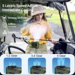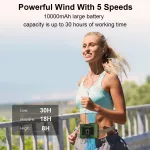 Featuring a high-speed brushless motor and 5 adjustable wind speeds, this fan delivers a cooling blast of air in seconds. With a maximum output of 18 m/s and speeds reaching 16,000 RPM, it’s perfect for beating intense heat. The built-in 10,000mAh rechargeable battery provides up to 30 hours of runtime on a single charge, depending on speed and usage.