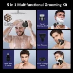 - 5 Grooming Attachments: Includes heads for shaving, trimming, facial cleansing, and nose/ear grooming.