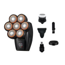 This electric razor features a 5-in-1 design with interchangeable heads for shaving, trimming, cleansing, and detailing. The main shaver head uses 7D floating technology to automatically adapt to the contours of your head, jawline, and neck for an ultra-close and irritation-free shave. Whether wet or dry, it glides smoothly over the skin with no pulling or discomfort, making it ideal for daily use or on-the-go touch-ups.
