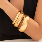 Crafted from high-quality iron alloy and polished to a smooth, mirror-like shine, each bangle reflects light beautifully, catching eyes and compliments alike. The closed design offers a secure and comfortable fit while making a strong fashion impact. Available in sleek silver and rich gold finishes, this set pairs effortlessly with both modern streetwear and timeless classics.