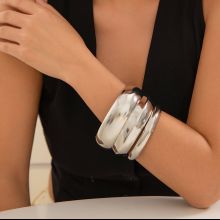 Turn heads and add edge to your style with this striking 3-piece set of glossy metal bangles. Designed with a retro-futuristic vibe, these bold round bangles bring together steampunk, vintage, and punk elements for a truly unforgettable accessory. Whether you’re layering up for a night out or making a minimalist statement, these chunky bracelets are the perfect finishing touch to elevate any outfit.
