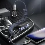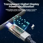 This cable features a transparent digital display that shows the charging speed in real time—so you always know how fast your device is powering up. Its reinforced braided wire construction, durable aluminum alloy casing, and built-in E-Marker chip provide superior protection, enhanced data transfer, and dependable charging performance up to 100W. The spring-coil design stretches up to 70 inches, perfect for in-car charging or tight spaces where flexibility is key.