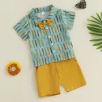 Keep your little guy cool, comfy, and cute all summer long with this adorable Toddler Boys Summer Outfit Set. Featuring a playful pencil print shirt with a classic lapel collar and a pair of solid color shorts, this two-piece set is the perfect blend of fun and fashion. Designed for active days and warm weather adventures, this outfit is ideal for playdates, family outings, daycare, or just enjoying the sunshine.Product Features