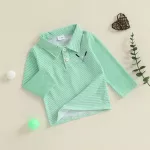 Get your little one ready for sunny adventures in this adorable Baby Boy Golf Stripe Shirt. Designed for comfort and style, this short-sleeve button-down tee is perfect for casual summer days, outdoor playdates, or even a mini family outing to the golf course. With its fun golf-themed embroidery and timeless stripe pattern, your toddler will look effortlessly cool while staying comfortable all day long. This tee combines the ease of a t-shirt with the crisp look of a button-down shirt. The breathable cotton blend keeps your baby fresh during warm weather, while the golf-inspired design adds a playful touch to any outfit. Whether you're heading to the park or capturing sweet moments on camera, this shirt is a must-have addition to your baby boy's wardrobe.Product Features