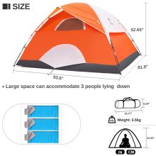 Featuring a 15x19 density PU2000 150D Oxford fabric flysheet and a 210D Oxford cloth floor, this tent ensures excellent water resistance and fast drying to keep you dry even in heavy rain. The robust 8.5mm fiberglass poles combined with iron ground nails provide enhanced stability to withstand wind and maintain your shelter's structure.