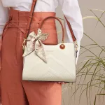 - Design: Classic tote shape with a gentle retro touch and silk scarf detail