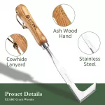 The clever L-shaped blade provides the ideal angle to reach weeds hidden in cracks and tight spots. Use the pointed fork tip to pry up roots and stubborn stems with ease, while the curved base rests securely on the ground to maximize leverage. A cowhide rope loop attached to the handle ensures convenient storage and easy access whenever you need it.