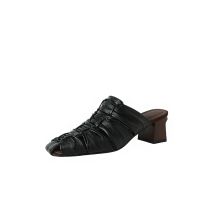 Elevate your summer style with these retro-inspired genuine leather Mueller slippers designed specifically for women who appreciate both fashion and comfort. Featuring a stylish high square heel, these slippers add a graceful lift that enhances your silhouette without compromising stability. The square toe design offers a timeless look with a modern twist, perfect for casual outings or relaxed indoor settings. Crafted with expert stitching and a pull-on closure, these slippers combine durability with ease of wear, making them a must-have addition to your shoe collection.