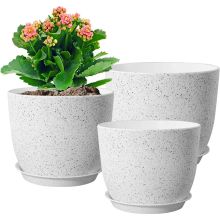 Crafted from high-quality plastic, these pots are both sturdy and lightweight, making them easy to move and rearrange whenever you want a new look. Each pot features built-in drainage holes with matching saucers, which prevent water from pooling at the bottom and help keep your plants healthy and thriving. With three different sizes—12 inches, 10 inches, and 9 inches in diameter—you can grow a variety of plants, flowers, or herbs, mixing and matching to fit your space perfectly.