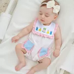 More than just a romper, this piece is a keepsake of her precious early days. The embroidered birthday cake adds a handmade touch that sets it apart, while the polka dot print keeps things playful and bright. Thoughtfully designed to blend style, comfort, and practicality, it's a piece that brings smiles to both babies and parents alike.Get Yours Today