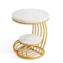 Use our battle tested marketing materials for Modern Round End Table with White Faux Marble Top and Gold Metal Frame