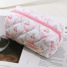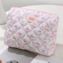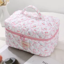 Use our battle tested marketing materials for Pink Bow Quilted Cherry Makeup Bag – Aesthetic Toiletry & Travel Pouch