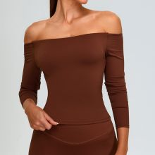 Use our battle tested marketing materials for Off Shoulder Long Sleeve Yoga Top – Women's Slim Fit Sports Shirt
