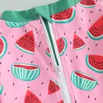 This swimwear set includes a one-piece long sleeve swimsuit and a coordinating swim cap. Made from a high-quality blend of polyester and elastane, the fabric is soft, stretchy, and quick-drying—keeping your toddler comfortable all day long. The swimsuit features:- Charming fruit prints – choose between juicy strawberries or playful watermelons