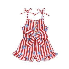 Get your little one ready for a star-spangled celebration in our Baby Girl 4th of July Romper. This charming sleeveless jumpsuit is made for fun-filled summer days, backyard BBQs, and fireworks under the stars. Designed with sweet tie straps, a comfy button-up front, and a matching belt, this playsuit brings patriotic flair with every detail. Crafted from a soft cotton-blend fabric with just the right amount of stretch, this romper keeps your toddler comfy and stylish all day long. Whether she's crawling, walking, or twirling in the sunshine, the flexible design supports every move while looking adorable in family photos. With a colorful print that captures the spirit of the season, it’s the perfect choice for July 4th festivities and beyond.Product Features