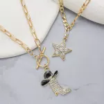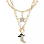 Crafted from durable stainless steel and zinc alloy, this necklace is made to shine and stay strong. The double-layered chain design adds depth and character, giving your neckline a chic layered look with zero effort. The standout pendants—boot, hat, and star—are finely detailed and thoughtfully spaced, creating a balanced, fashion-forward accessory that’s easy to pair with anything from denim jackets to flowing maxi dresses.