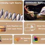 This projector combines cutting-edge DLP technology with a 15000mAh built-in battery, letting you enjoy vivid, crisp visuals for up to 3 hours unplugged. With TOF autofocus and automatic keystone correction, your image adjusts perfectly in just one second. It supports both wired and wireless mirroring, so you can easily stream content from your smartphone, laptop, or tablet. Its 3D compatibility adds an extra layer of excitement to your entertainment options.