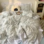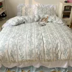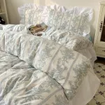 Transform your bedroom into a vintage-style sanctuary with this Korean Princess Floral Bedding Set. Inspired by classic French countryside charm, this set features delicate pastel florals, graceful lace ruffles, and a soft washed cotton texture that brings both comfort and timeless beauty to your space. The gentle color palette and feminine design make it the perfect choice for those who love a soft, romantic aesthetic with a hint of old-world elegance.
