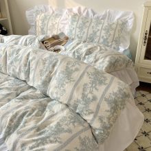 This bedding set stands out with its delicate detailing and nostalgic floral design. The reactive printing process ensures long-lasting color that won’t easily fade, while the lace trim adds a soft, elegant touch. It's the perfect blend of style and comfort, ideal for those who want to wake up in a room that feels like a romantic retreat. Whether you’re creating a vintage-inspired guest room or a charming everyday escape, this set will bring warmth and softness to your nights.