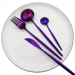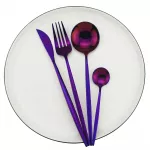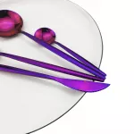 What sets this cutlery apart is its combination of sleek Western-style form and a vibrant purple finish that shimmers with every reflection. The mirror-polished surface gives the utensils a sophisticated shine, while their solid construction ensures comfort and balance in every bite. With a smooth, weighted feel in your hand, you'll notice the difference the moment you pick them up.