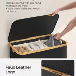 Keep your laundry routine smooth and clutter-free with this large 3-section laundry hamper, designed to meet the needs of a multi-person household. Offering an impressive 52.8-gallon capacity, this hamper lets you easily sort clothes by color, fabric, or family member in one stylish unit. Its sleek black finish and elegant faux leather handle on the lid add a modern touch while hiding laundry mess from view.