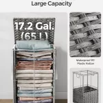 This hamper includes a well-designed lid that’s easy to open with one hand, helping you keep dirty laundry hidden and unpleasant odors contained. The removable, machine-washable liner with sturdy handles allows for easy transport and keeps your laundry routine hygienic and hassle-free. Thanks to the ventilated, waterproof PP rattan construction, clothes stay dry and fresh while the solid metal frame supports up to 44 pounds for lasting durability.