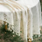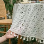 This tablecloth is best used when you want to impress guests with a delicate yet functional piece that beautifies your dining space. Its breathable fabric makes it ideal for outdoor events, while the sturdy weave ensures it holds up beautifully indoors. The combination of classic polka dot flower patterns and tassels creates a nostalgic feel that’s both cozy and stylish.