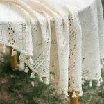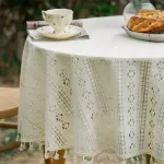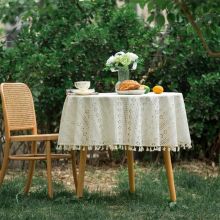 Elevate your dining experience with this Round French Retro Tassel Tablecloth. Crafted from a soft blend of polyester and cotton, this beautifully woven table cover brings a touch of vintage elegance and charm to any setting. Its delicate hollow crocheted garden flower design, paired with classic tassels, creates a stunning focal point that transforms your table into a stylish centerpiece.