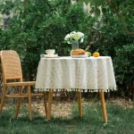 Bring a touch of classic elegance and cozy charm to your table with this Round French Retro Tassel Tablecloth. Make every meal and celebration more beautiful today.