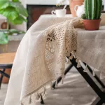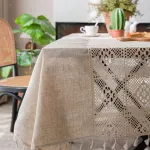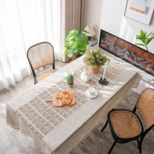 Bring understated elegance to your dining space with this Plain Cotton Linen Tablecloth featuring a delicate hollow splicing design. Crafted with a soft blend of cotton and linen, this tablecloth offers a fresh, natural look that transforms your table into a serene and welcoming setting. Its solid color and clean lines are beautifully complemented by the subtle crochet-inspired edging, making it a stylish and functional addition to any room.