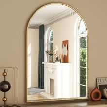 Elevate your interior with this 26x38 inch arched wall mirror that blends timeless charm with modern minimalism. The soft curve of the arch top adds a refined, elegant silhouette, while the sleek metal frame gives it a clean and contemporary finish. Perfectly sized for bathrooms, vanities, entryways, or bedrooms, this wall-mounted mirror effortlessly enhances any space with its sophisticated appeal and practical function.