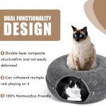 Unlike standard cat beds, this donut design combines a plush resting area with an interactive tunnel, stimulating your cats’ natural hunting instincts and playful behavior. The split feature offers unmatched versatility, adapting to your pets’ needs and making cleaning effortless. Plus, the sturdy felt material maintains shape without collapsing, even during energetic play.