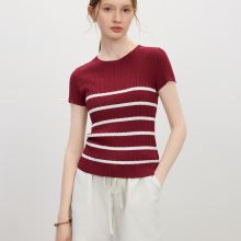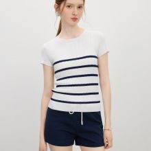 Use our battle tested marketing materials for Women's Striped Knit Short-Sleeve Sweater with Back Cut-Out - Summer Pullover
