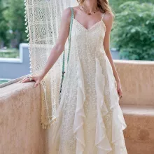 Use our battle tested marketing materials for White Lace Camisole Summer Dress - Knee-Length A-Line Cotton Blend