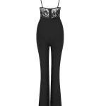 Designed to make a bold entrance, this elegant black lace bandage bodycon jumpsuit is your ultimate outfit for nights that demand attention. With its seductive spaghetti straps, intricate lace patchwork, and curve-enhancing bandage fit, this jumpsuit effortlessly combines allure and sophistication. Whether you're attending a high-profile party, club event, or a chic evening out, this show-stopping piece ensures all eyes stay on you. Crafted for confident women who aren’t afraid to flaunt their figure, the jumpsuit sculpts and supports in all the right places while adding a sultry edge with its semi-sheer lace detailing and hollow accents. The result? A stunning blend of sexy and classy that feels just as good as it looks.What Makes It Special