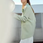 - Minimalist chic – Clean, solid color and notched lapels make it a timeless wardrobe piece.