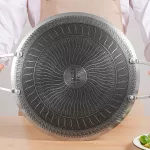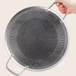 Enjoy authentic Korean BBQ flavors with this 316 stainless steel grill pan, designed specifically for grilling bulgogi, pork belly, ribs, pancakes, and more. Its round shape and unique honeycomb and fish scale pattern deliver even heat distribution and a non-stick surface, ensuring your food cooks evenly without sticking. The double ear handles offer easy lifting and safe handling, whether you're grilling indoors or out.