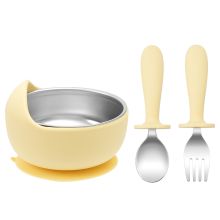 - 3-Piece Set: Includes a suction bowl, a soft-handled fork, and a matching spoon