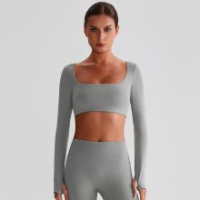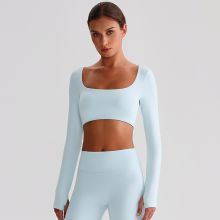 Use our battle tested marketing materials for Women's Long Sleeve Square Neck Yoga Crop Top – Quick Dry, Breathable, Stylish