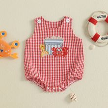 Use our battle tested marketing materials for Baby Boy Summer Romper Sleeveless Plaid Bodysuit with Crab Fish Embroidery