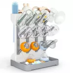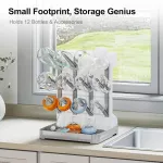 This space-saving drying rack features a vertical layout with multiple prongs and holders to keep bottles upright for faster, more hygienic drying. Made of durable, BPA-free plastic, it's safe for baby gear and built to last through daily use. Its freestanding design offers a compact footprint, making it ideal for countertops with limited space.