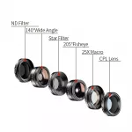 This lens kit includes six powerful photography tools: a 205° fisheye lens for bold, distorted views; a 140° wide-angle lens for expansive shots; a 15X macro lens for capturing the tiniest details up close; a CPL (polarized) filter to eliminate glare and enhance color; an ND32 filter for dramatic light control; and a starlight filter that turns light sources into sparkling 4-line stars. Each lens is made with premium optical glass and designed for maximum clarity and effect.