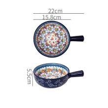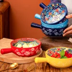 Crafted from premium, heat-resistant ceramic, this bowl is not only beautiful to look at—it’s also built for performance. The sturdy handle allows for easy carrying, even when the bowl is hot, making it ideal for serving dishes straight from the oven or microwave. Whether you're enjoying breakfast at home, prepping a single-serve baked dish, or plating snacks for guests, this piece of tableware delivers convenience without compromising on aesthetics.