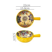 Add a splash of creativity to your meals with this bohemian-style ceramic bowl with handle. Designed to blend artistic charm with everyday practicality, this bowl is perfect for everything from fresh fruit and colorful salads to instant noodles, baked dishes, and warm comfort foods. With its eye-catching boho patterns, smooth ceramic glaze, and thoughtfully designed handle, this bowl turns casual dining into an experience full of color and character.