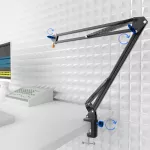 Take your streaming or recording experience to the next level with this adjustable microphone suspension boom arm stand. Designed for creators who need flexibility without sacrificing desk space, this boom arm features a foldable structure and a clamp mount that secures to the edge of your desk—freeing up your entire workspace. Whether you're working in a compact home studio or traveling between locations, this foldable design ensures portability and practicality.