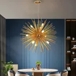 Turn your space into a stunning design statement with this Modern Gold Dandelion Sputnik Pendant Light. Inspired by the soft, whimsical shape of a blooming dandelion, this eye-catching chandelier brings a playful yet elegant touch to your living room, dining room, or even a stylish bar or loft. Designed in a radiant gold finish, the fixture adds warmth and character to any modern or industrial-inspired interior.