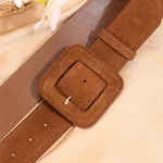 Command attention with a belt that does more than hold—it defines your look. This wide high-waist women’s belt is made from genuine suede cowhide leather, offering luxurious texture and superior durability. Featuring a bold square buckle, it cinches your waist with style and confidence, making it the perfect finishing touch for dresses, jeans, and layered outfits. Whether you're dressing for a casual brunch, music festival, or a night out, this statement piece adds structure and standout appeal.