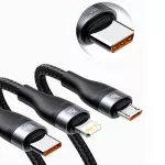 Streamline your charging setup with this powerful 3-in-1 USB-C Fast Charging Cable, designed to charge multiple devices at once—quickly and efficiently. Whether you're powering your MacBook, charging your iPhone 15, or juicing up your Android tablet, this multi-device cable is your all-in-one solution. No more tangled cords or searching for the right connector—this cable covers it all with a durable, tangle-free nylon braided design.